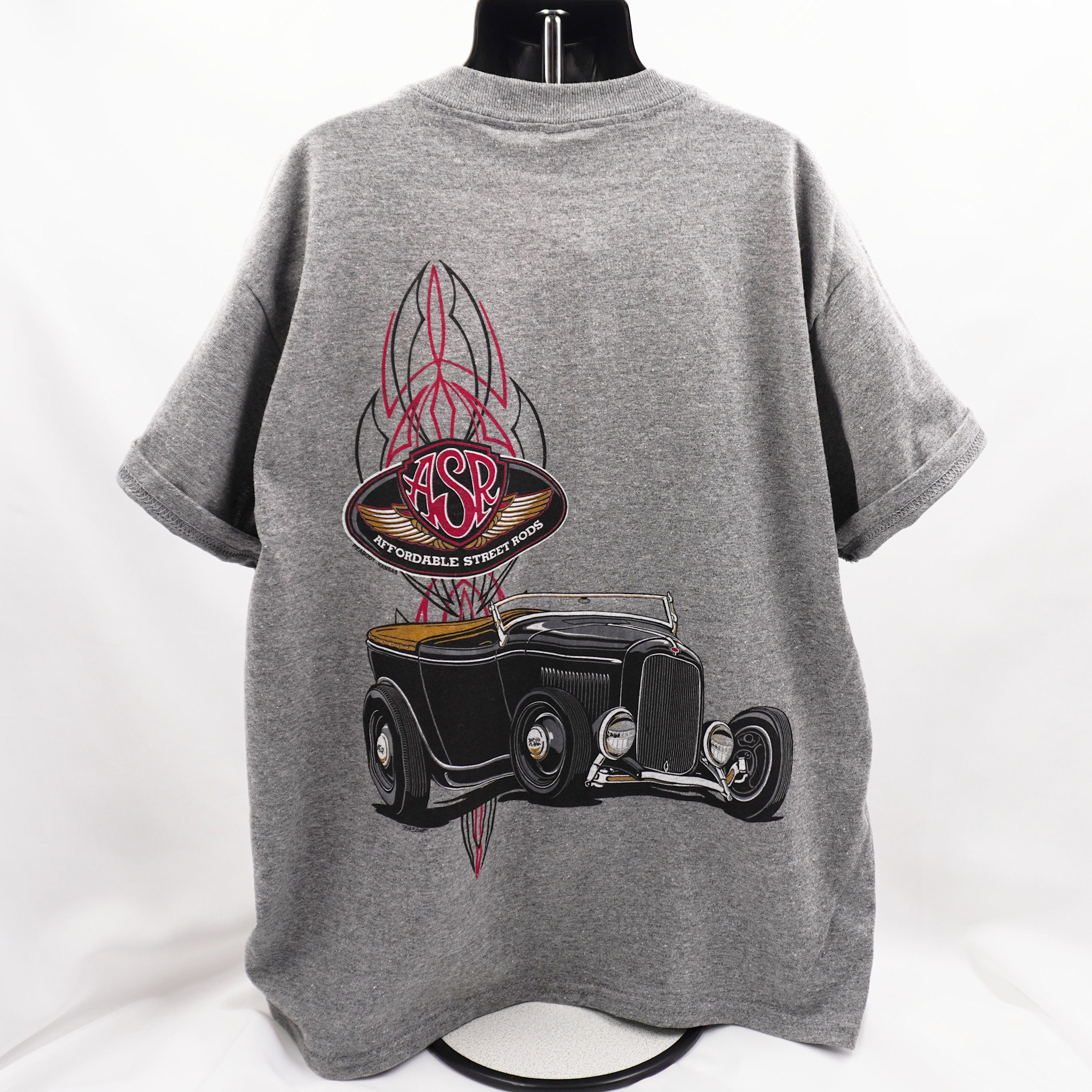 Set your kids on the right track to LOVE hotrods as much as you do with this Affordable Street Rods t-shirt featuring a 32 Phaeton roadster and our wings logo.
