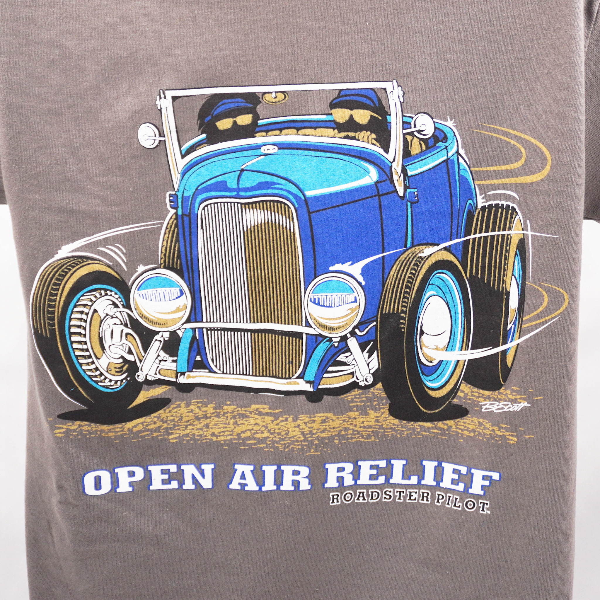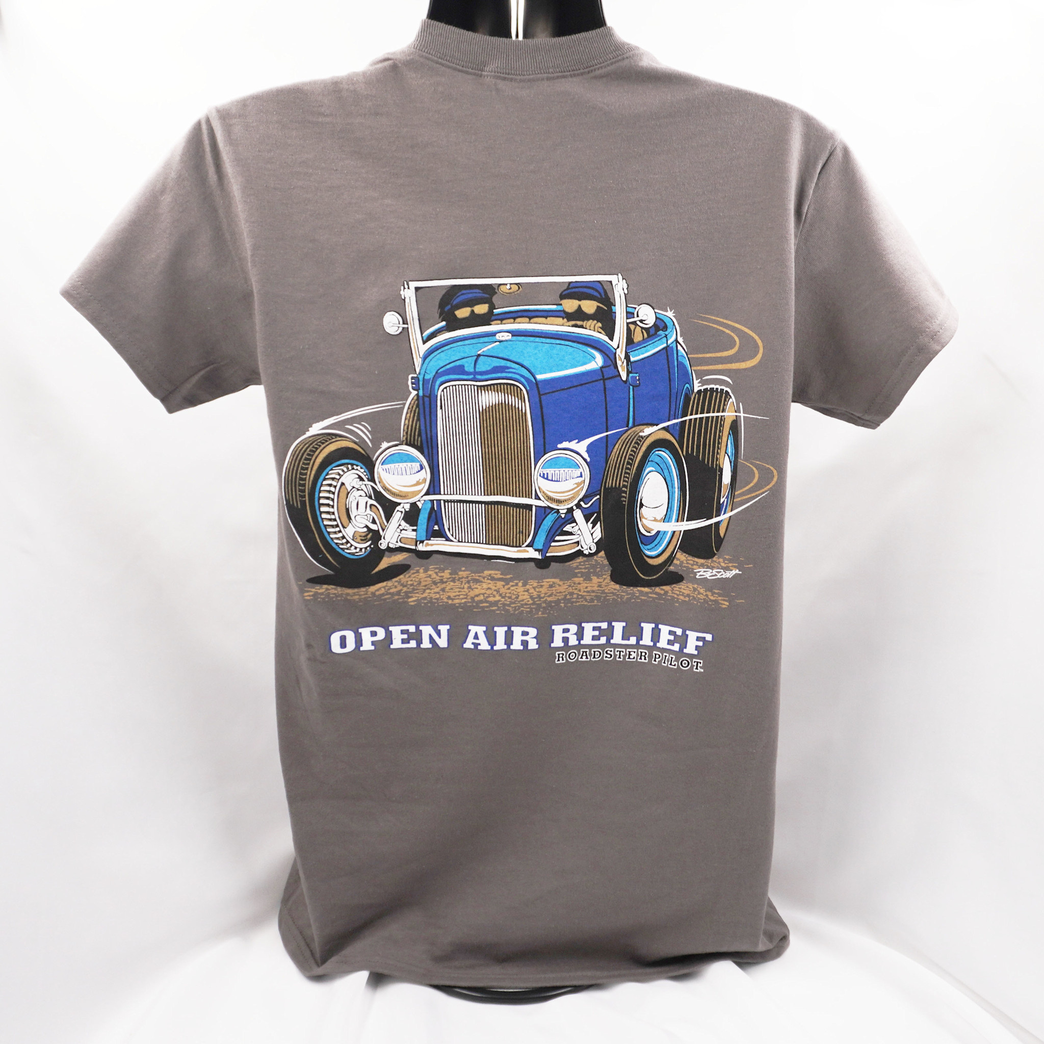 If you know the great feeling of getting some open air relief...you NEED this shirt! Printed on a charcoal gray shirt, the large graphic on the back of the shirt reminds you of the joy of the open air ride. The front left chest sports a small Roadster Pilot logo.