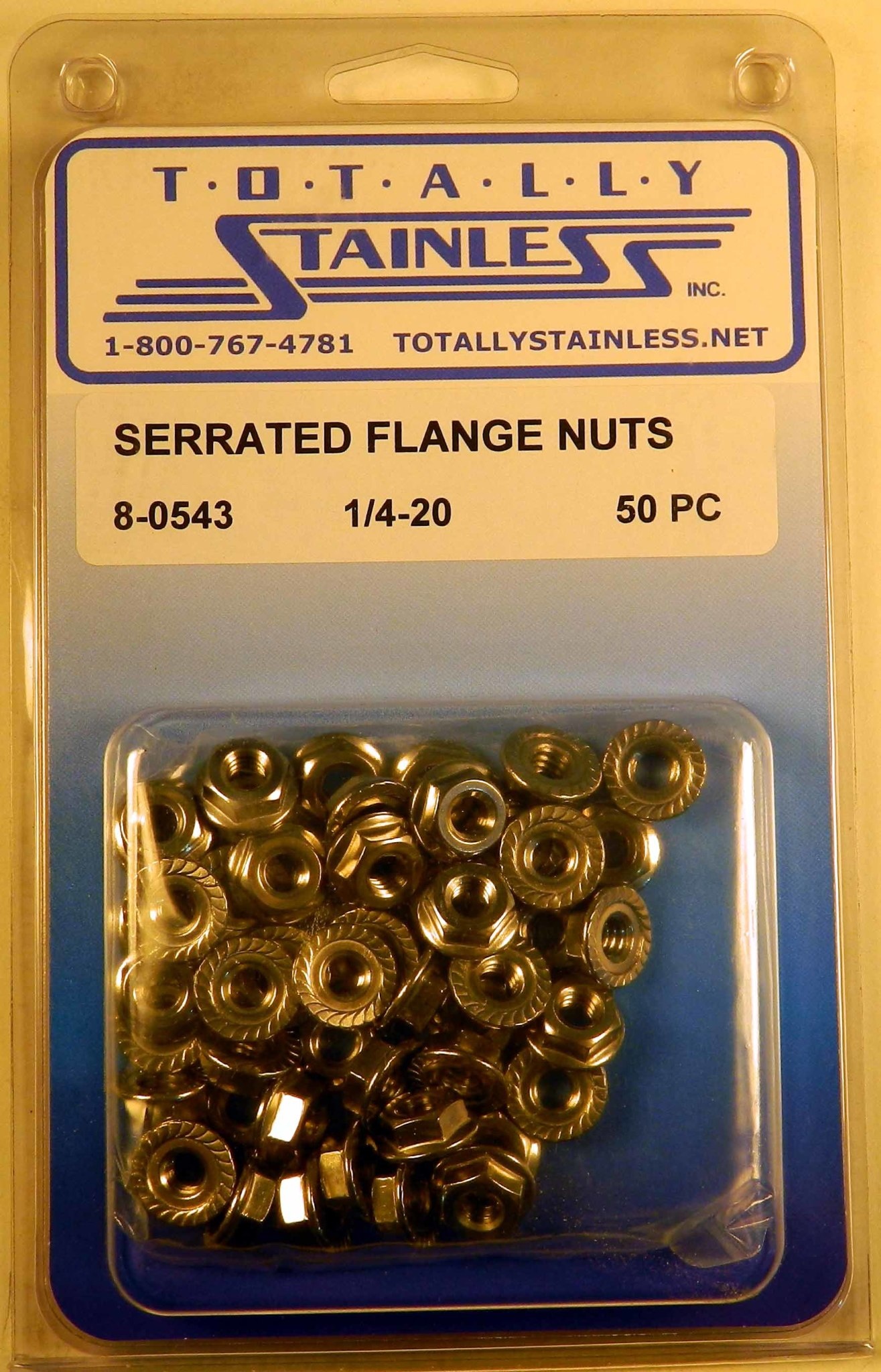 Genuine Totally Stainless 1/4-20 Stainless Serrated Flange Nuts - 8-0543 - 18-8 Stainless Steel -50 Nuts