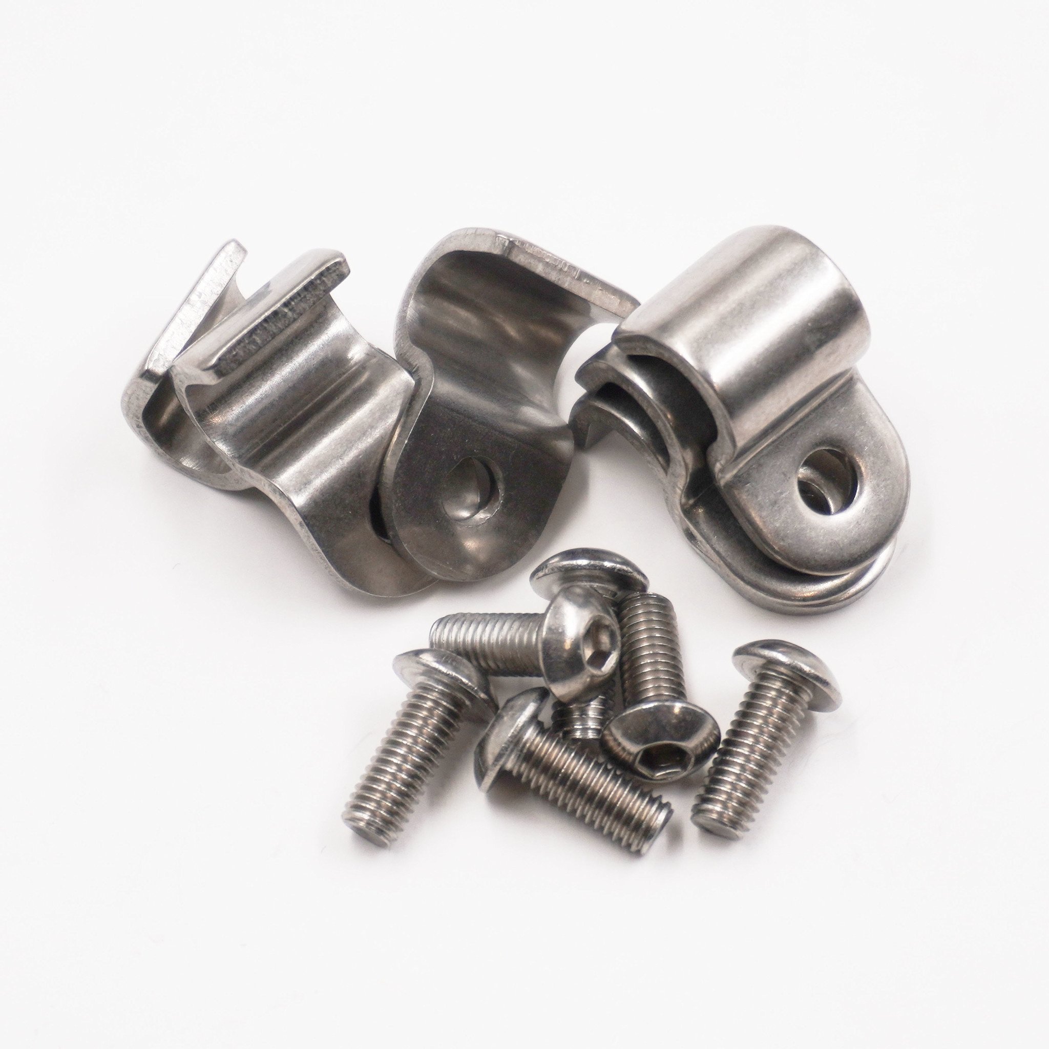 Single Stainless Steel Line Clamps: 5/16" Clamps with 10:32 Buttonhead Screws (6 pcs) - 8620
