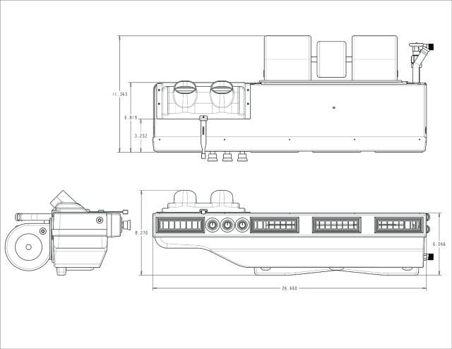 The latest evolution of our venerable Slimline under dash evaporator unit. Retains excellent tried and true cooling capacity in a compact easy to install under dash package. New manual engagement of defrost outlets eliminates the need for vacuum operation and delivers improved airflow through angled 2" outlets. The new design also incorporates a servo operated heater control valve for variable temperature control.
