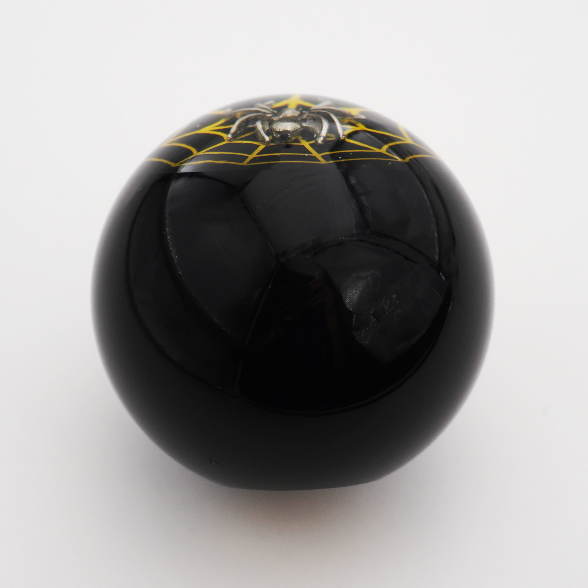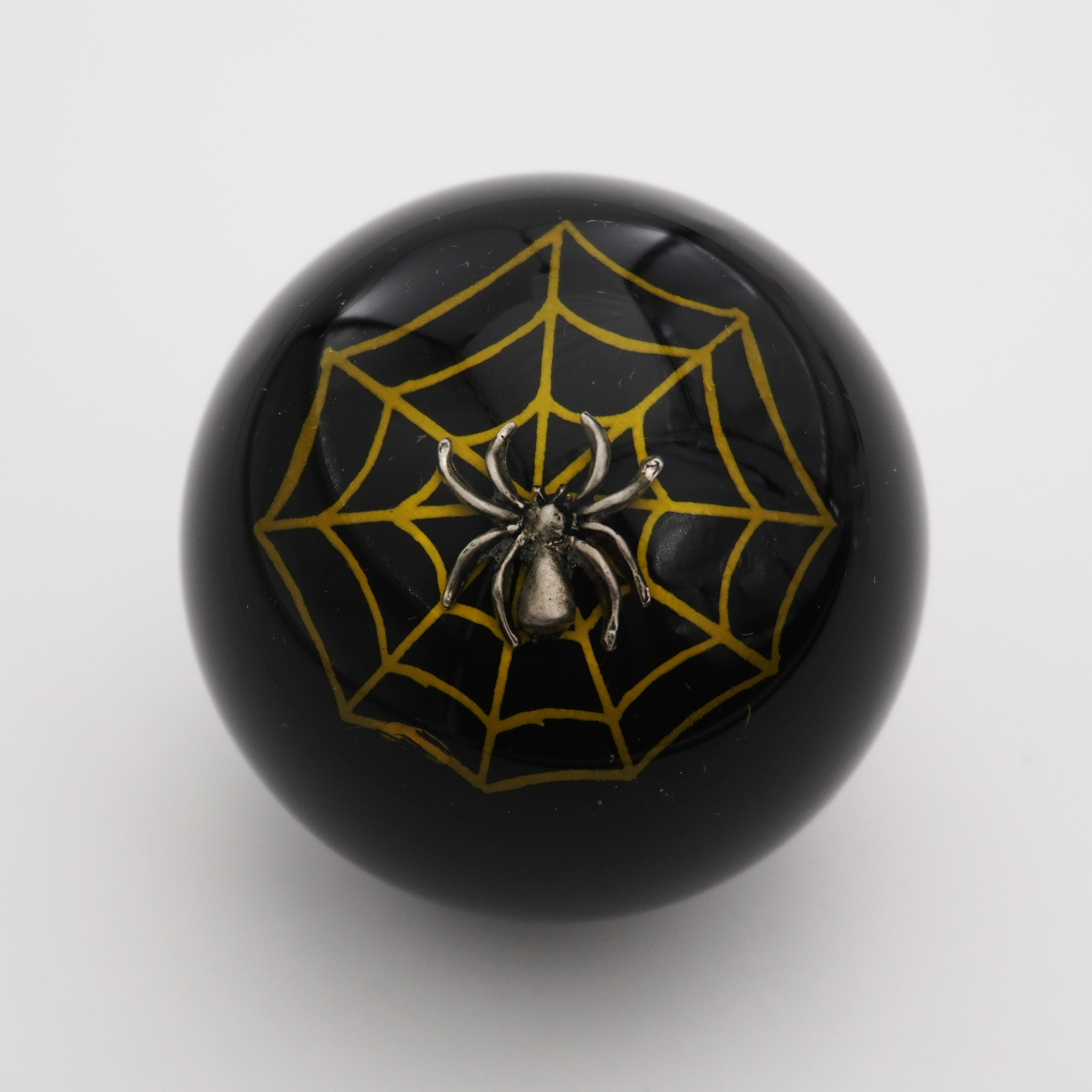 Spider Embedment in a Black Knob with Yellow Spider Web - 2 1/8" knob with a 16mm x 1.50 brass insert