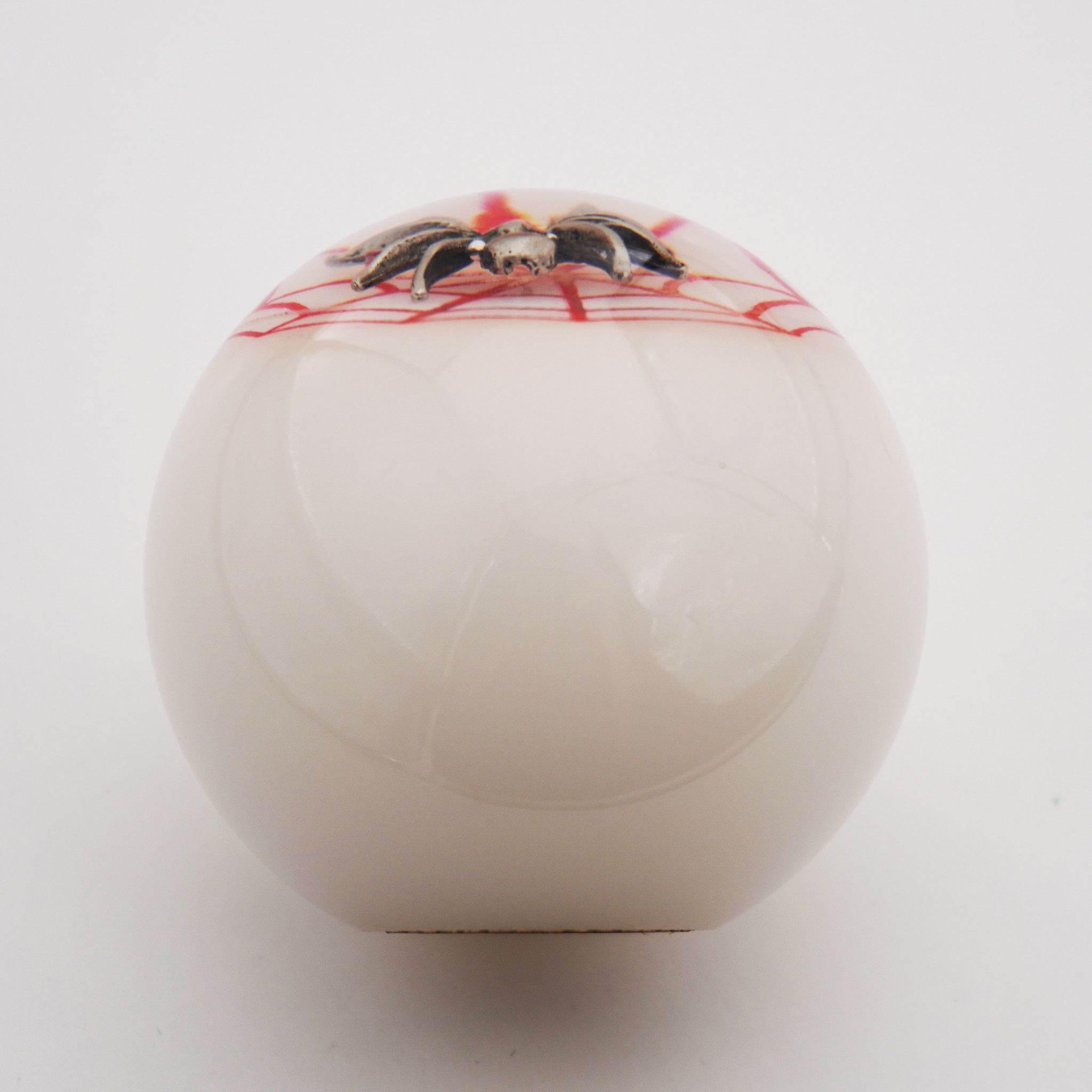 Spider Embedment in a White Knob with Red Spider Web - 2 1/8" knob with a 16mm x 1.50 brass insert