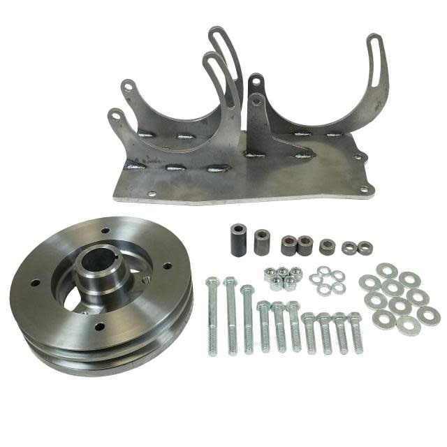 Steel-eez Chevy 6-Cylinder Brackets 270 Compressor Alternator bracket kit. Includes new double-groove 6-cyl harmonic balancer.