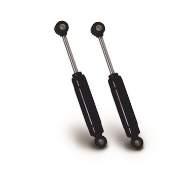 Gas filled, Low pressure design for early hot rods. Extended length: 11 1/4". Compressed length: 7 7/8". Upper mounting sleeve ID: 7/16". Upper bushing ID with sleeve removed: 5/8". Lower bushing ID: 5/8".