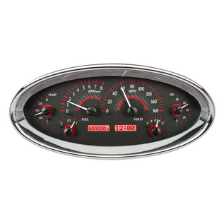 Inspired by the iconic Art Deco designs on the 1930s, the VHX-1017 is housed in a billet aluminum, show chromed housing measuring 12.05 x 5.7” (11.66" x 5.3" cutout). At just 2.5” deep, this instrument system can be used in the most cramped applications, bringing both form and function.